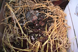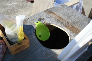 Directly around the bottles we use woodchips, because the pieces are so much bigger than the holes in the bottles, that they can't clog them. To be sure that the urine gets dispersed fast,