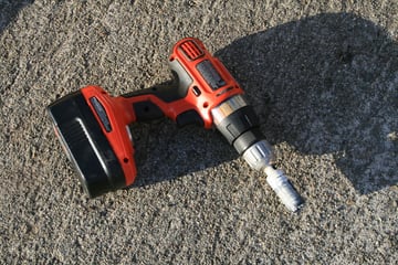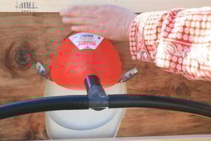 The holes for urine dispersion can be drilled with a normal 1/4" drill, for the bigger holes (to insert the irrigation tubing that will connect the urine diverting funnel with the dispersing bottles) we use a holesaw of the same diameter as the tubing. A holesaw is a kind of a drill bit with a circular serrated edge, that cuts perfectly round holes.