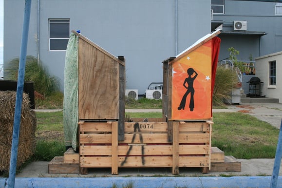 Building the privacy screen took a bit longer… due to the harsh winds in Alameda, where we built the prototype, our market umbrella idea was not functional. We ended building two outhouse-like