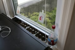 Als Blumentöpfe nehme ich Eierkartons, als Spezialgießkanne für feine Berieselung soll mir eine Wasserflasche dienen, in deren Deckel ich ein paar kleine Löcher gebohrt habe. Damit nix durchtropft stelle ich die Eierkartons auf ihre abgerissenen Deckel mit einem Stück Plastikfolie dazwischen.