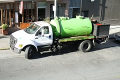 Gerade steht ein kleiner Tanklaster auf der anderen Straßenseite vor dem schicken Restaurant und rattert so laut vor sich hin, dass mein ganzer Erker wackelt... gerne von der Arbeit abgelenkt, schaue ich raus, wer da so einen Krach macht.